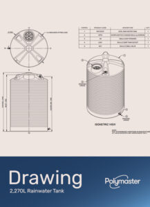 This tall 2,270ltr rainwater tank provides a handy supplement to your household’s main water supply for a range of uses such as garden irrigation and laundry. As with all Polymaster rainwater tanks, this certified tank is manufactured with strength in mind.